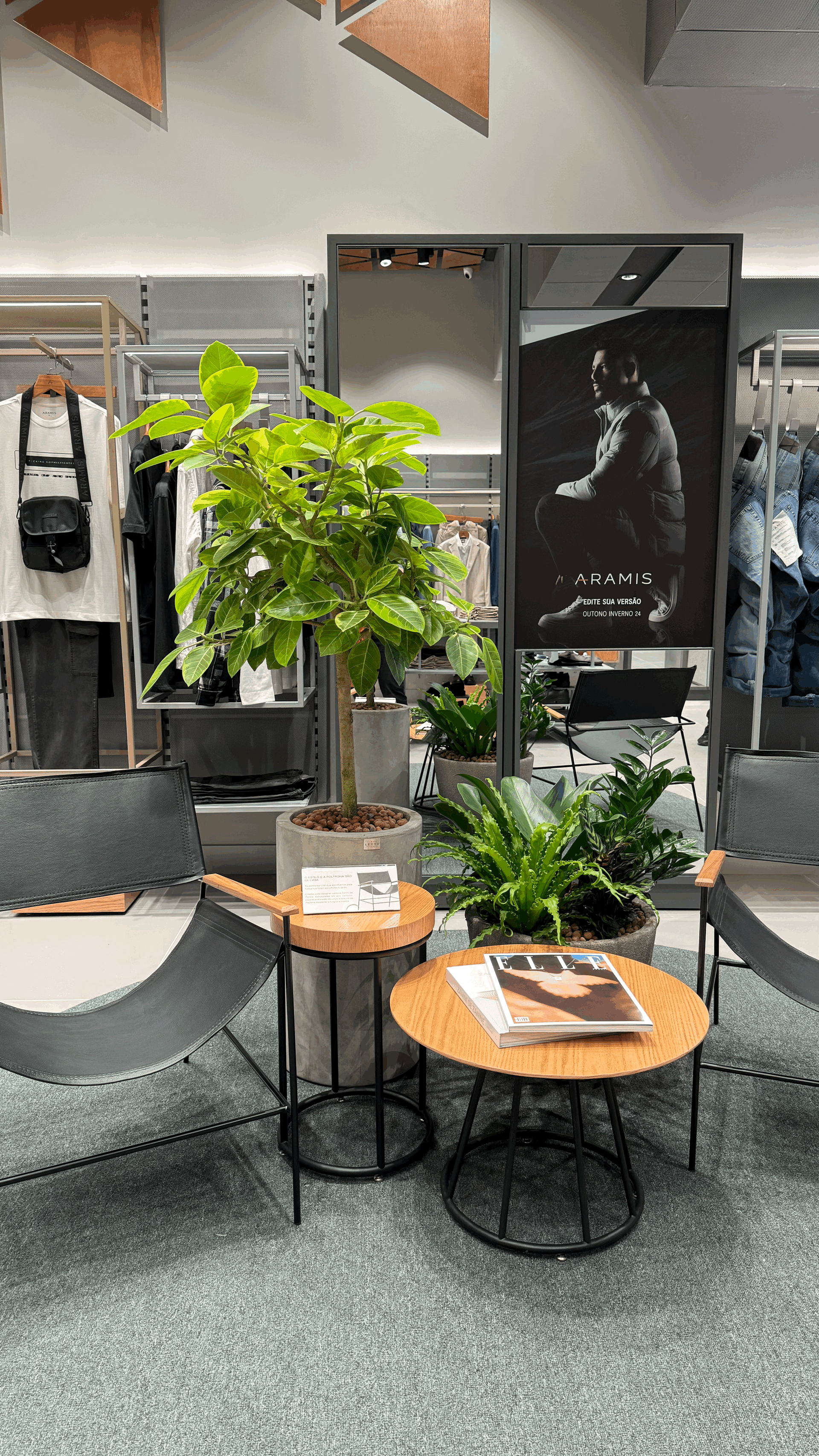 Design biofílico implementado em múltiplas lojas pelo país, integrando natureza e arquitetura comercial para criar ambientes acolhedores onde plantas se tornam elementos essenciais da experiência do cliente.